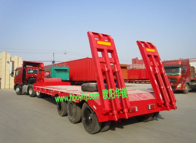 13米鉤機板運輸半掛車也稱挖機運輸半掛車,此半掛車為3米寬。感謝付總對歐陽華俊的支持與關注,祝您生意興隆,財源廣進!猴年發大財哦。下面分享下這臺紅色的13米3橋全新鉤機板運輸半掛車圖片: