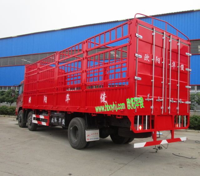 8.7米高欄車廂在外型設計上,力求造型美觀、內部結構合理、工藝先進,采用優質鋼材為骨架,嚴格按照行業標準焊接而成,廂板經工裝夾具壓制而成瓦楞型,具有較高的強度,同時具有自重輕、倉柵欄桿可半拆、全拆和隨意升降、方便實用、安全可靠等特點。《訂車優惠熱線:13396117366,13367109288,湖北歐陽華俊專用汽車有限公司歡迎您!》