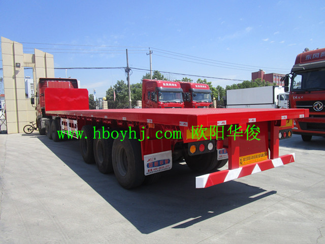 發布日期:2016-09-05 11:46:55 編輯:歐陽華俊 瀏覽量:235613米直梁平板半掛車完工交付,祝湖南益陽的伍師傅一路順風,賺錢滿滿!伍師傅用13米的鎖桿式倉欄車車兌換的這臺13米直梁式平板半掛車。此13米平板直梁半掛車為尺寸:13米長×2.5米寬×2.9米前站板離地高,感謝所有的司機朋友們,對歐陽華俊掛車廠的關注與支持?!?strong>湖北歐陽華俊專用汽車有限公司歡迎您!