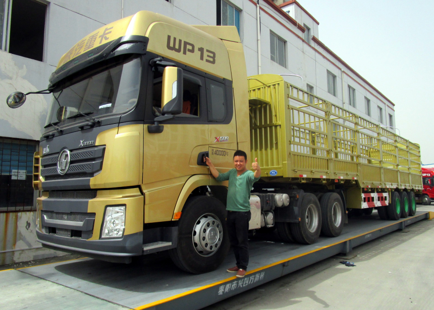 發(fā)布日期:2017-04-28 11:49:44 編輯:歐陽(yáng)華俊 瀏覽量:8792全新的13米土豪金色倉(cāng)欄半掛車完工交付啦!與湖北恩施的田老板駕駛的陜汽德龍X3000黃金版牽引車那是極好的般配喲O(∩_∩)O 看著田老板得意的笑和豎起的大拇指,作為歐陽(yáng)華俊人,小編內(nèi)心像是吃了蜂蜜般的甜!