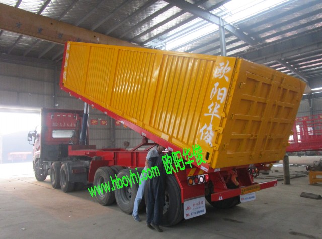 歐陽華俊8.5米黃色集裝箱紅色骨架半掛車圖片(3)