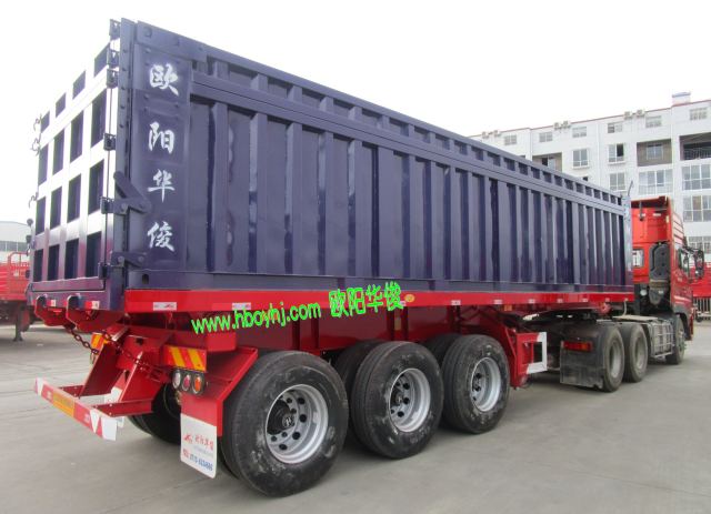 歐陽華俊9米集裝箱平板式后翻自卸半掛車圖片(3)