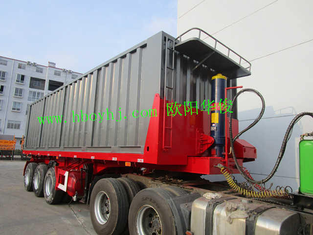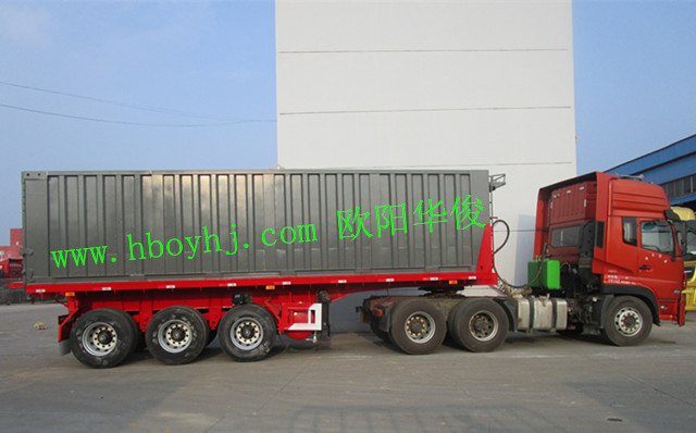 歐陽華俊2臺9米灰色平板集裝箱后翻自卸半掛車圖片(4)