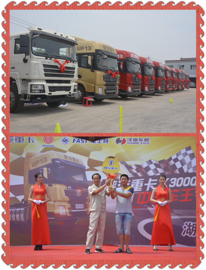 活動現場交付用戶3輛X3000 500馬力黃金版牽引車,2臺F3000自卸車,開發意向用戶18人,簽單5人。