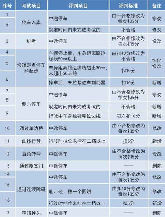 科目二考試評(píng)判主要修改一覽