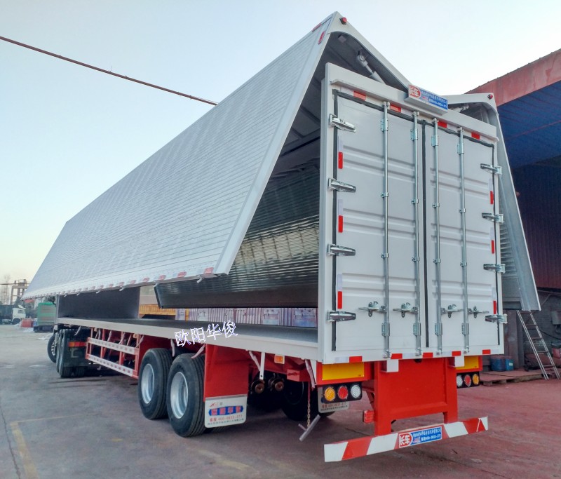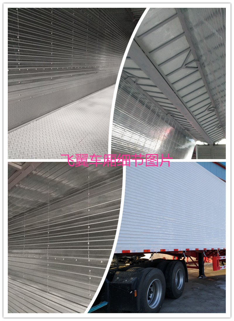 底板采用3.0厚花紋板。車廂面板采用彩鋼板,內板用鍍鋅板,頂板鍍鋅板,外觀精觀,內部漂亮實用。通過液壓裝置開啟車廂兩側翼板的專用車輛,其具有裝卸速度快,效率高,可側面裝卸等優點。