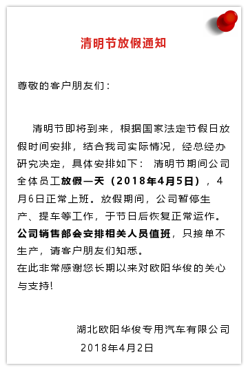 【歐陽華俊】清明節放假通知!
