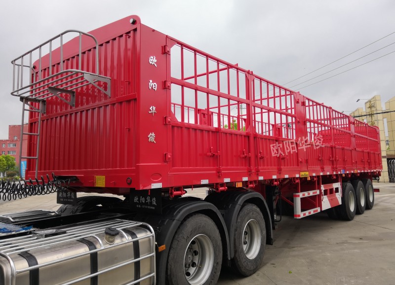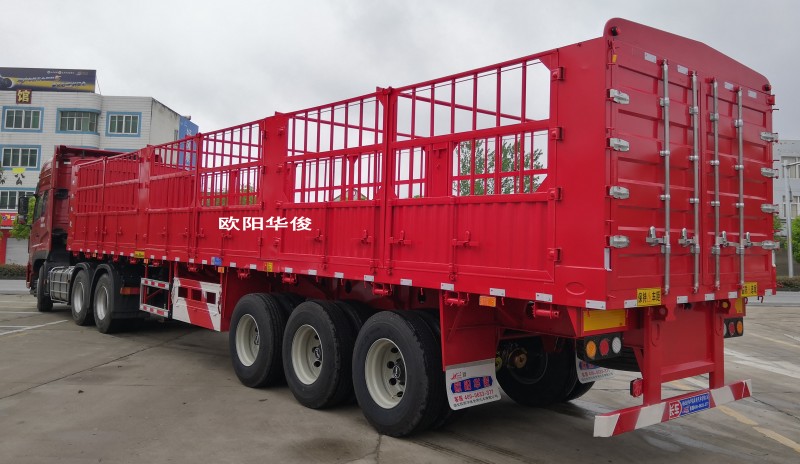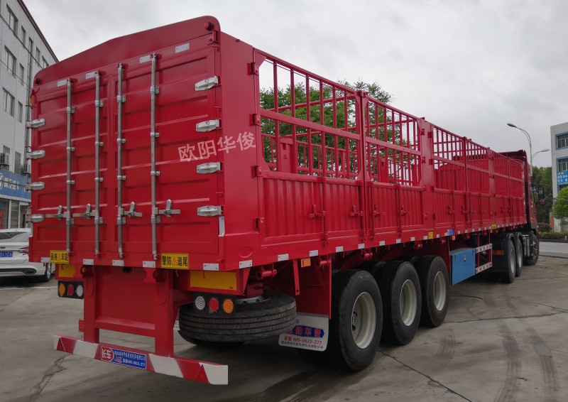 湖北歐陽華俊專用汽車有限公司生產的大開門帶鎖桿式倉柵式半掛車有如下特點: