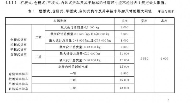 為此,查詢了GB1589-2016《汽車、掛車及汽車列車外廓尺寸、軸荷及質(zhì)量限制》。其中,對(duì)于車輛外廓尺寸的要求中,非常清晰的可以看到,無(wú)論是倉(cāng)柵式半掛車、欄板式半掛車、平板式半掛車、自卸式的貨車還是其他類型的半掛車,整車高度很高不得超過(guò)4米。
