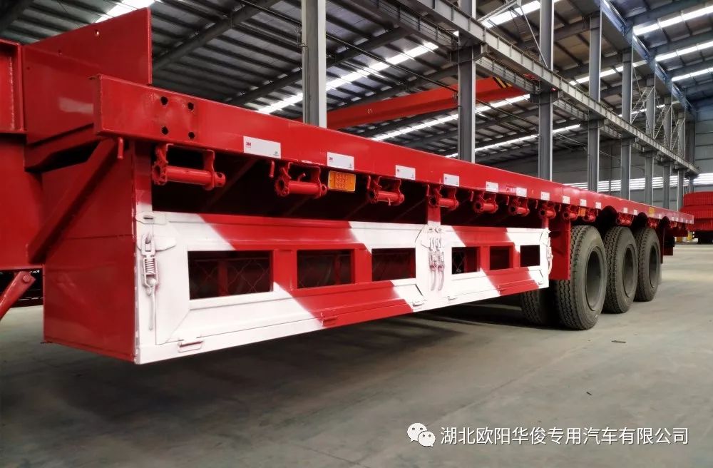 發布日期:2018-08-17 04:11:09 編輯:歐陽華俊 瀏覽量:3790在歐陽華俊廠區,除常規車型倉欄半掛銷量穩居第一之外,13.75米長*3米寬平板半掛車也是銷售熱度持續不減,廣受好評。