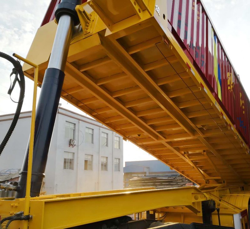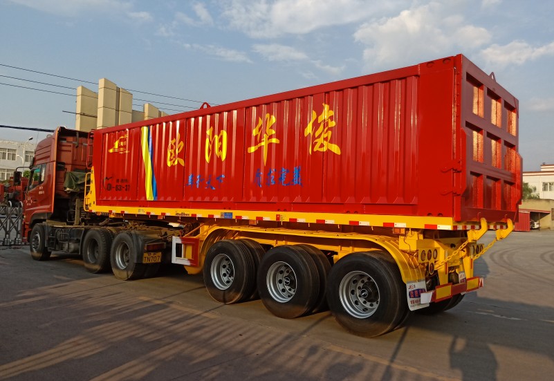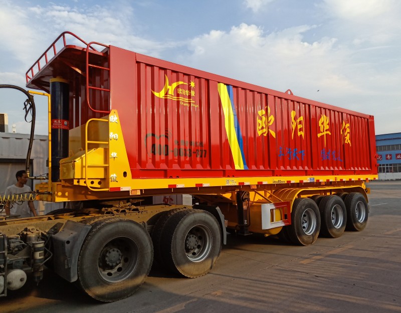 發(fā)布日期:2018-09-16 04:21:52 編輯:歐陽華俊 瀏覽量:23899米平板后翻自卸半掛車如期交付賀總,后翻自卸車作為歐陽華俊暢銷車型之一,它具有重心低,舉升不易翻車等特點(diǎn)。車架用高強(qiáng)鋼制成,大大增加了承載強(qiáng)度。重心降低至1.3米一1.4米,運(yùn)貨中不上晃不易側(cè)翻,對(duì)輪胎和板簧、車架損害降低許多。