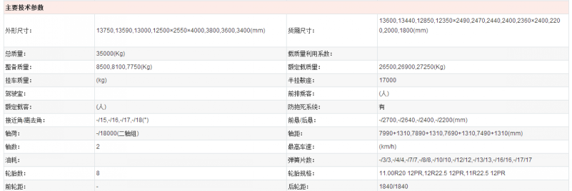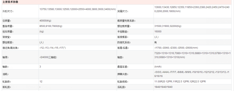 三軸飛翼車廂主要技術參數