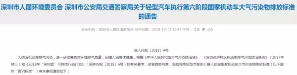 通告中明確指出,2018年11月1日(含)起,在深圳市注冊登記、外地轉入的變更登記和轉移登記的輕型壓燃式發動機汽車應當符合國Ⅵ標準;