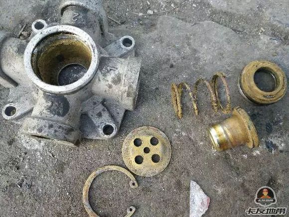 基本上常規類制動閥(排除電子式控制單元的ECU繼動閥、掛車閥、三橋閥)的上蓋有4個固定螺栓,拆掉這4個固定螺栓,打開上蓋,就看到活塞上面的冰清除后,用細一點的螺絲刀在下面排氣口往上頂,把活塞頂出來,擦干凈抹上黃油,再按回去就可以了。