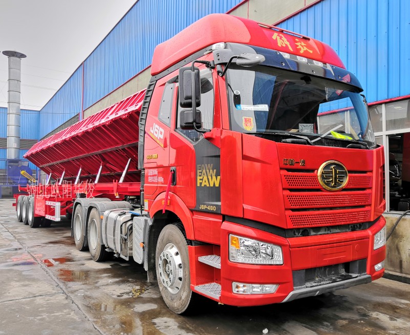 徐總訂的側(cè)翻自卸半掛車大概配置如下:外觀尺寸為13米長×2.55米寬×0.6米高,按客戶要求做的是向左翻,左邊設(shè)計(jì)為三個(gè)扣子,上下都可翻起來。右側(cè)為正常欄板樣式,每塊墻板下加4個(gè)合頁使用。車廂底板2.0厚高強(qiáng)鋼平板,整車根據(jù)車輛承載質(zhì)量要求,對車架進(jìn)行科學(xué)設(shè)計(jì),合理分載,同等載貨下,有效降低產(chǎn)品自重,可有效提高裝卸及運(yùn)輸效率。