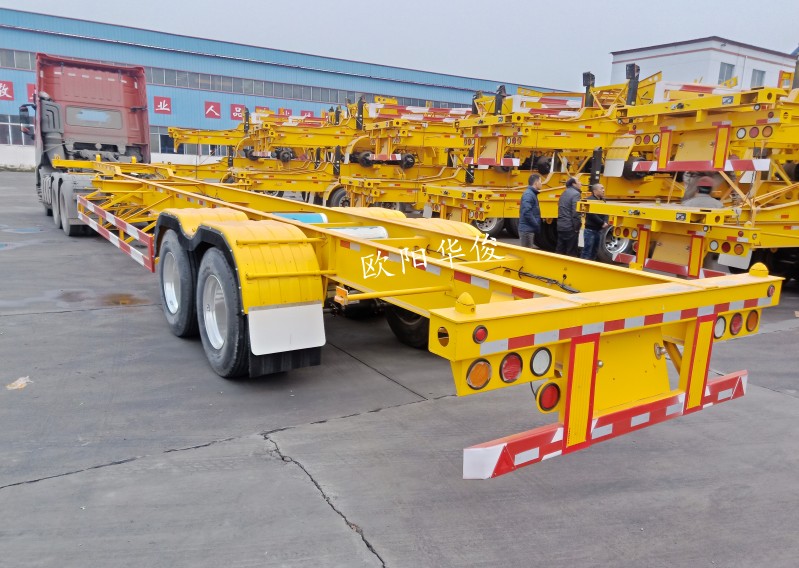 本公司生產的骨架式集裝箱運輸車專門用于20、40、45英尺等各種集裝箱的運輸。很佳的設計方案,結構合理,操作可靠,外觀優美,發揮整車的很大潛能,產品的多樣性選擇,可滿足客戶的個性化需求。