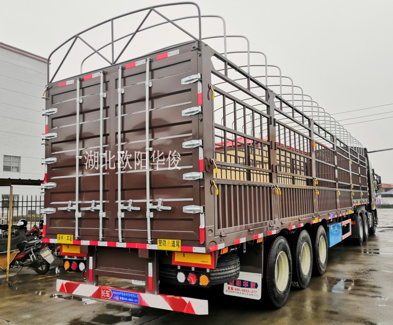 好消息:歐陽華俊2019全新超輕型高欄半掛車隆重上市啦,自重6噸左右,能上叉車的超輕型高欄半掛車銷量火爆,新型合金式底板,此款底板的防水效果及抗壓效果都讓客戶很滿意。