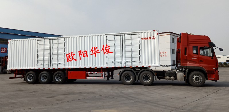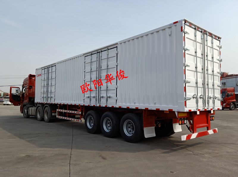 廂式半掛車主要適用于家用電器、輕紡貨物、煤炭、沙石等建筑材料以及圖盤貨物的運輸。歐陽華俊生產(chǎn)的廂式半掛承載力強(qiáng),安全系數(shù)高、設(shè)計合理、堅固耐用,工藝制造先進(jìn),是您的不二之選!
