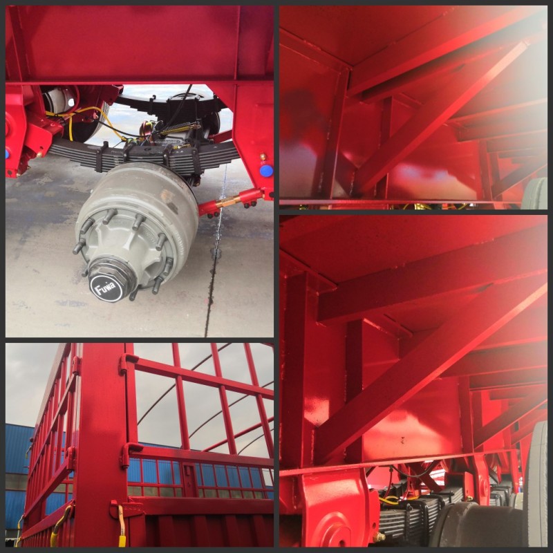 此半掛車采用正宗的廣東富華FUWA車橋,帶自動調(diào)整臂帶ABS;因客戶拉貨集中裝載,故在設(shè)計上將貫穿梁用槽鋼打斷平焊,增加支撐力。