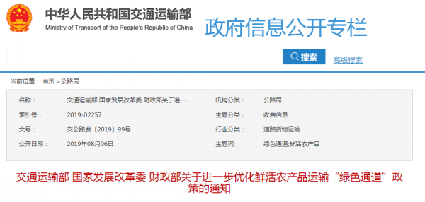 此次政策,不僅實現了全國綠通目錄的統一,更是建立了鮮活農產品運輸信用體系。