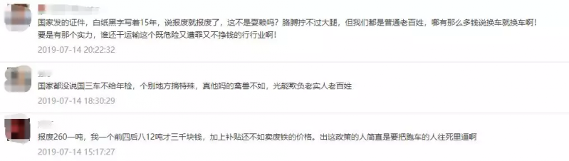 “報廢260一噸,我一個前四后八12噸才三千塊錢,加上補貼還不如賣廢鐵的價格!”