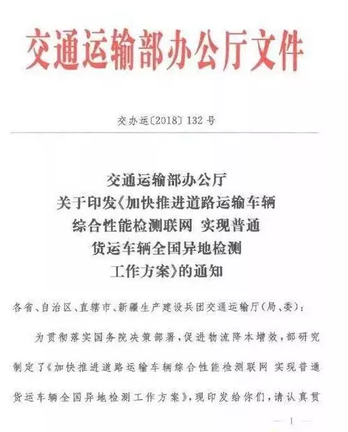 根據《加快推進道路運輸車輛綜合性能檢測聯網 實現普通貨運車輛全國異地檢測工作方案》的要求,各省應在2019年底前實現普通貨運車輛全國異地審驗。