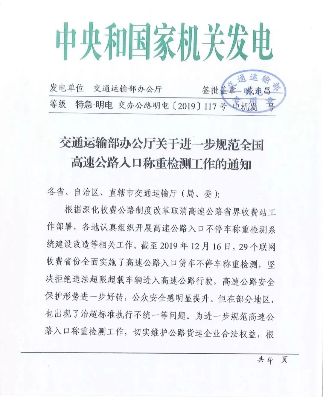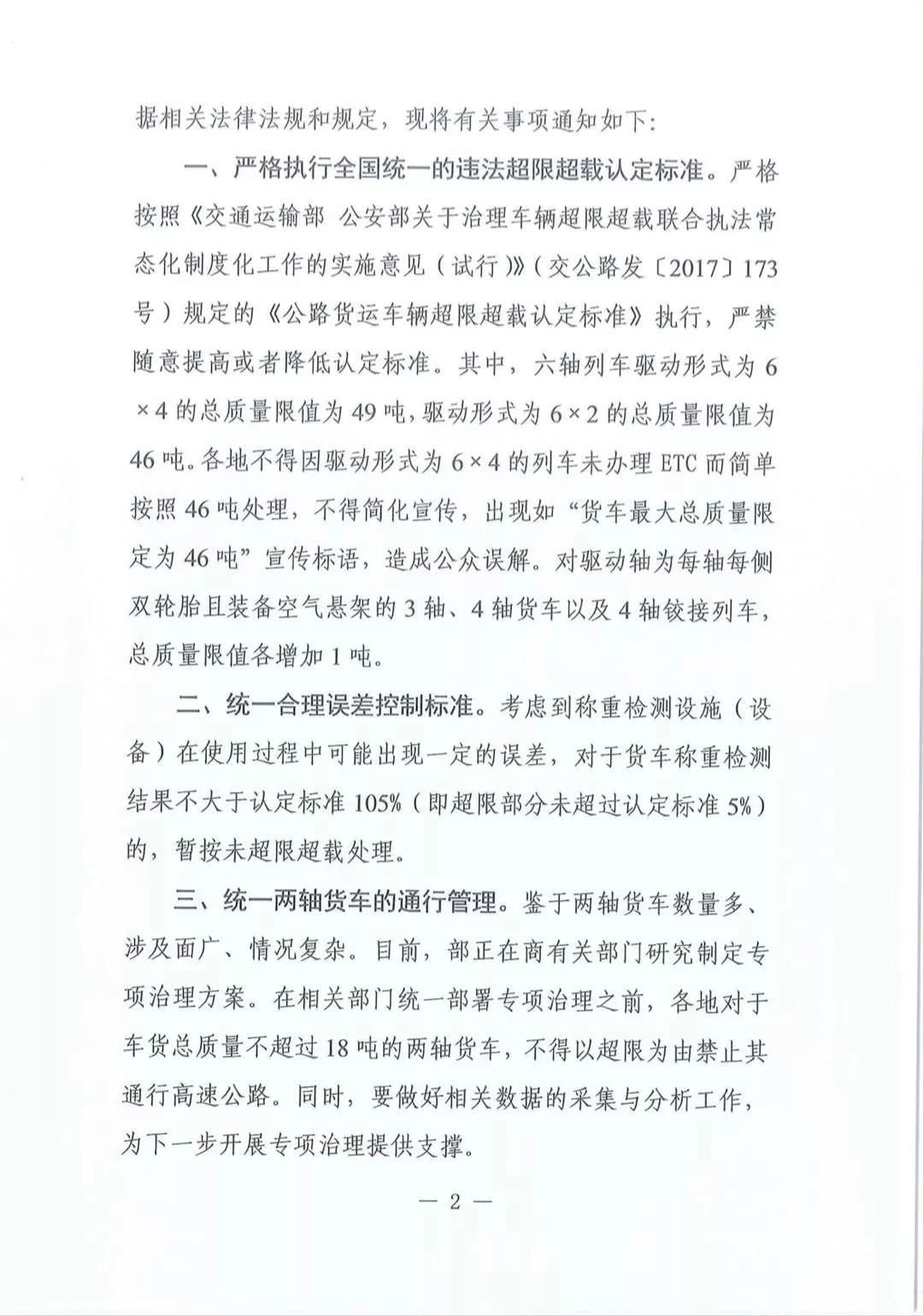 交通部急電:兩軸車暫限載18噸,只要低于18噸,不得以超限為由禁上高速!
