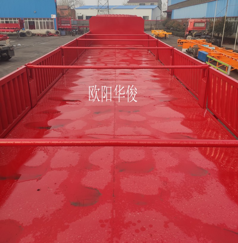 此側(cè)翻尺寸為:13米長×2.55米寬×2.9米高。墻板高度為60公分高,6支舉升油缸,1支移位油頂。可選擇翻轉(zhuǎn)方向(左邊翻,右邊翻,左右雙邊翻)。該車左右兩邊都可翻,可有效提高運輸散裝零散貨物的運輸效率。適用于煤炭、礦石、泥沙、建筑物料等散裝零散貨物的運輸。