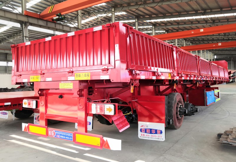 側翻自卸半掛車:可有效地提高裝卸機運輸散裝零散貨物的運輸效率,自卸式半掛車適用于煤炭、礦石、泥沙、建筑物料等散裝零散貨物的運輸。