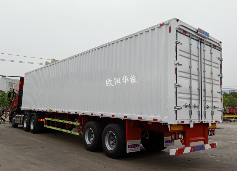 對翼開啟廂式半掛,分別有兩軸和三軸,歐陽華俊還可定制生產12米、12.5米、13米、13.58米、13.75米等不同長度規格,所做車型均有公告資質,可上戶。歡迎廣大新老客戶來廠考察洽談~