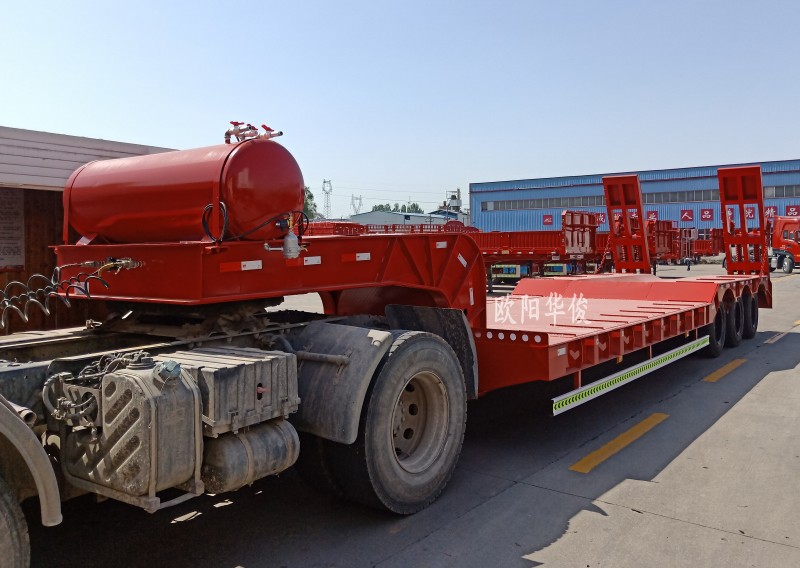 發布日期:2020-05-22 10:09:38 編輯:歐陽華俊 瀏覽量:163512.5米3軸低平板鉤機板半掛車完工交付武漢卡友啦。此低平板半掛車尺寸為:12.5長×3米寬,工作平臺設計為高低高樣式,輪胎不外露,工作平臺更大。一起和小編來看看吧~