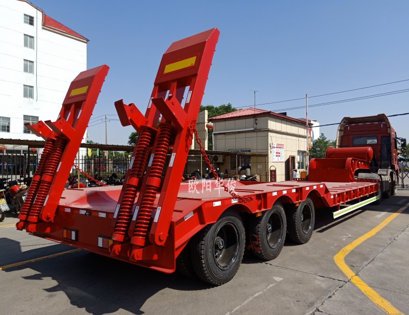拉挖機就選它!歐陽華俊12.5米3軸低平板鉤機板運輸半掛廠家直銷