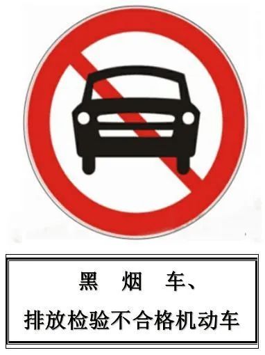 黑煙車限行標(biāo)志牌主標(biāo)為國家規(guī)定的“禁止機(jī)動(dòng)車通行”禁令標(biāo)志,下面輔以“黑煙車”等文字。