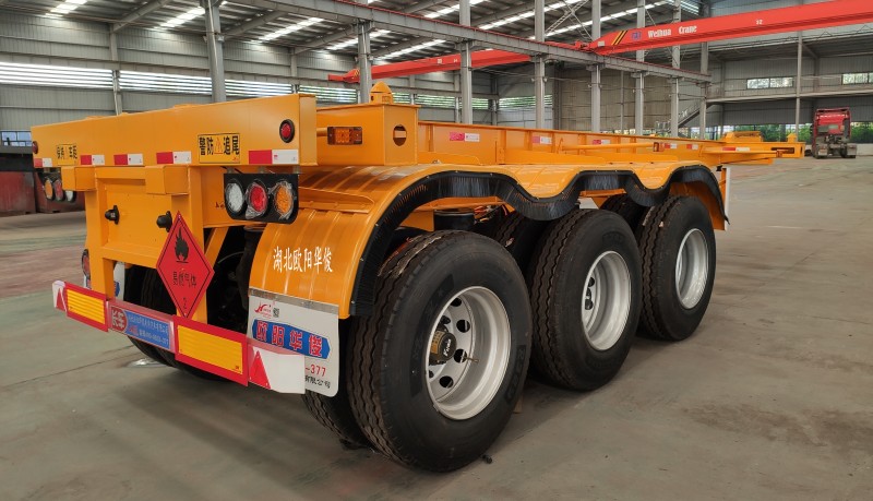 【華俊熱銷】兩臺20英尺危險品骨架半掛車配盤式制動+空氣懸掛完工啦