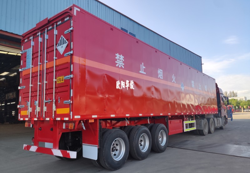 【華俊新產品】空懸盤剎危險品廂式半掛車交付湖南長沙阮總