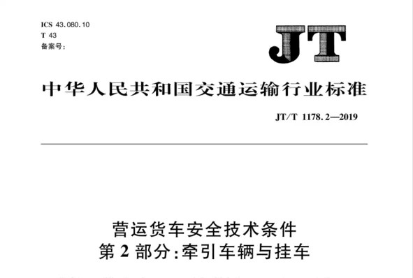 一、JT/T 1178.2-2019《JT/T 1178.2-2019 營運貨車安全技術條件 第二部分:牽引車輛與掛車》于2020年9月1日起實施,涉及車輛配置變化如下。