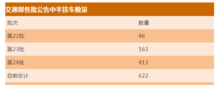 隨后在8月底,交通部也打破了“每月一批”的傳統,連續發布了兩批達標車型。截至目前,取得該公告的車型共有622款。但粗略觀察一下這幾批的名單就會發現,這622款車型中,主要是各類危險品半掛車——這也是因為今年4月1日起,《危險貨物道路運輸營運車輛安全技術條件》正式實施,危險品運輸車辦理營運證也被納入了達標車型統一管理。