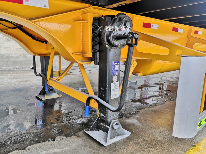 骨架式集裝箱半掛車即集裝箱半掛車載貨部位為集裝箱結構的半掛車。使用集裝箱轉運貨物,可直接在發貨人的倉庫裝貨,運到收貨人的倉庫卸貨,中途更換車、船時,無須將貨物從箱內取出換裝??梢赃M行快速裝卸,并可從一種運輸工具直接方便地換裝到另一種運輸工具。