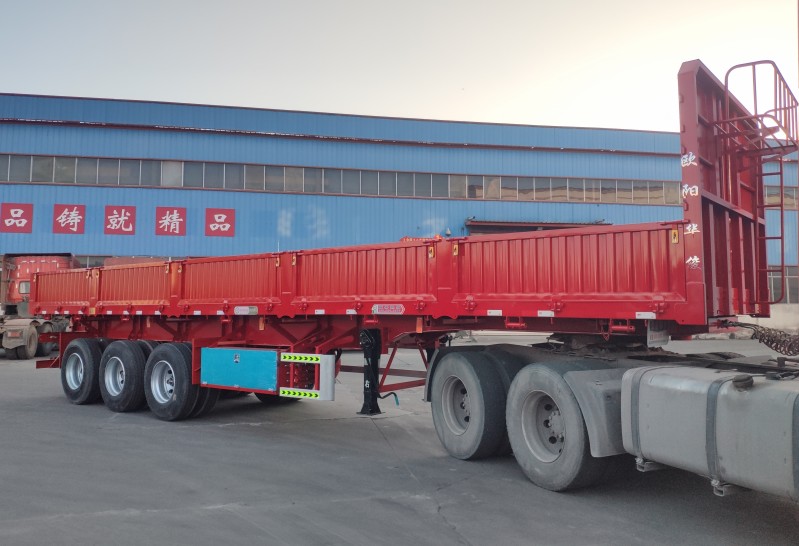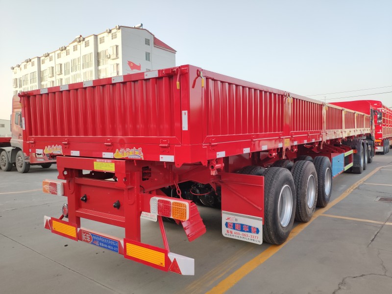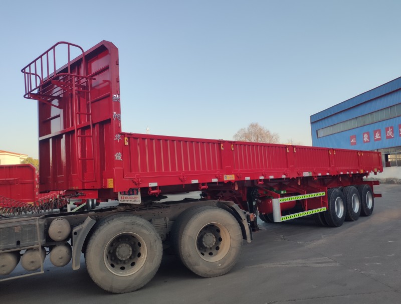 此側翻尺寸為:13米長×2.55米寬×2.9米(離地高)。墻板高度為60公分高,6支舉升油缸,1支移位油頂。該車左右兩邊都可翻,可有效提高運輸散裝零散貨物的運輸效率。適用于煤炭、礦石、泥沙、建筑物料等散裝零散貨物的運輸。
