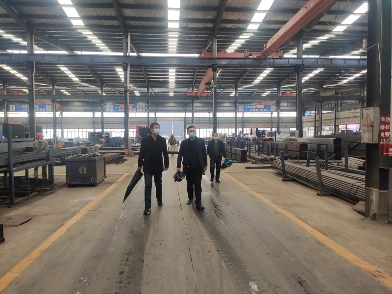 參觀2號材料車間,歐總向馬局長介紹了歐陽華俊新購入的百萬激光切割設備制作的部件。