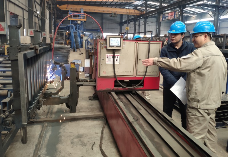 技術質量部楊主任與嚴教授交流墻板自動焊接工藝