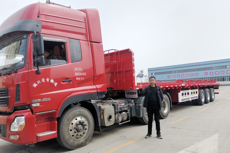 發(fā)布日期:2021-04-29 11:35:26 編輯:歐陽華俊 瀏覽量:1714湖北歐陽華俊廠區(qū)內火爆款的13米直梁平板半掛車交付給李總,感謝全國的卡友們一如既往的對歐陽華俊的支持與厚愛。