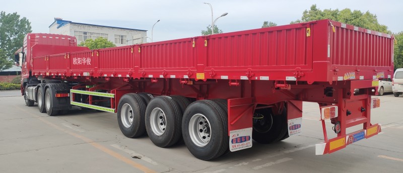側翻自卸半掛車:可有效地提高裝卸機運輸散裝零散貨物的運輸效率,自卸式半掛車適用于煤炭、礦石、泥沙、建筑物料等散裝零散貨物的運輸。