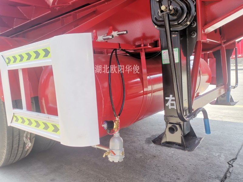 后翻自卸半掛車在馬腿處加裝了一個水箱,一應俱全,讓卡友想用水時,隨時調控。