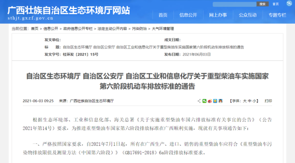 除此之外,廣西也在近日發布通告表示,將國五車上牌延遲到2021年12月31日。