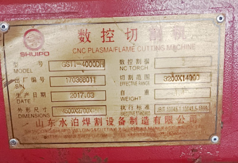 此數控切割機:于2017年購買,山東水泊焊割設備制造有限公司生產。