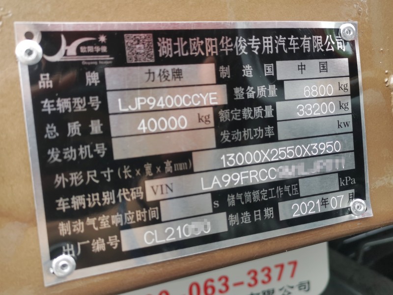 歐陽華俊《力俊牌》倉欄半掛車,一家具有專業公告資質的公司,營運資料齊全,全國可上新戶。
