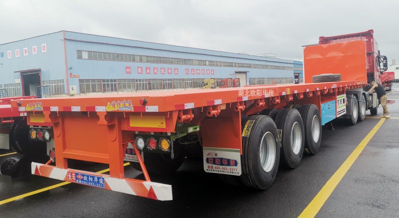 讓卡友滿意的歐陽華俊13米鋼板橋平板半掛車發(fā)往廣西