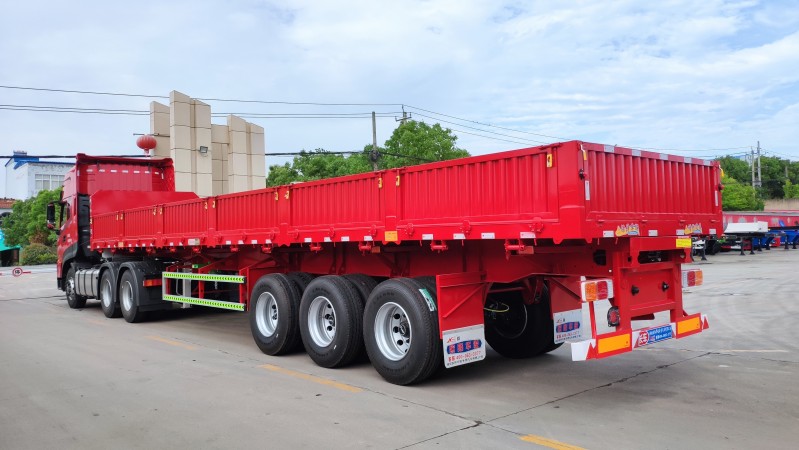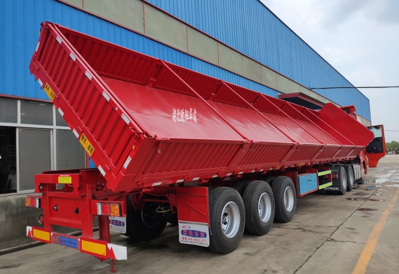 側翻自卸半掛車:可有效地提高裝卸機運輸散裝零散貨物的運輸效率,自卸式半掛車適用于煤炭、礦石、泥沙、建筑物料等散裝零散貨物的運輸。