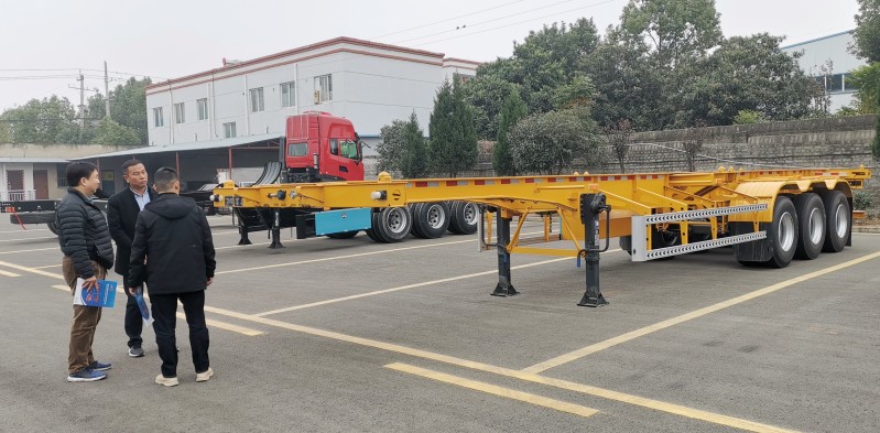 歐總為大家講解歐陽華俊生產的危險品骨架半掛車已獲得很新的營運公告,全國可以上新戶;我們公司暢銷的13米翻自卸半掛車,質量和工藝設計又再次升級改進中!